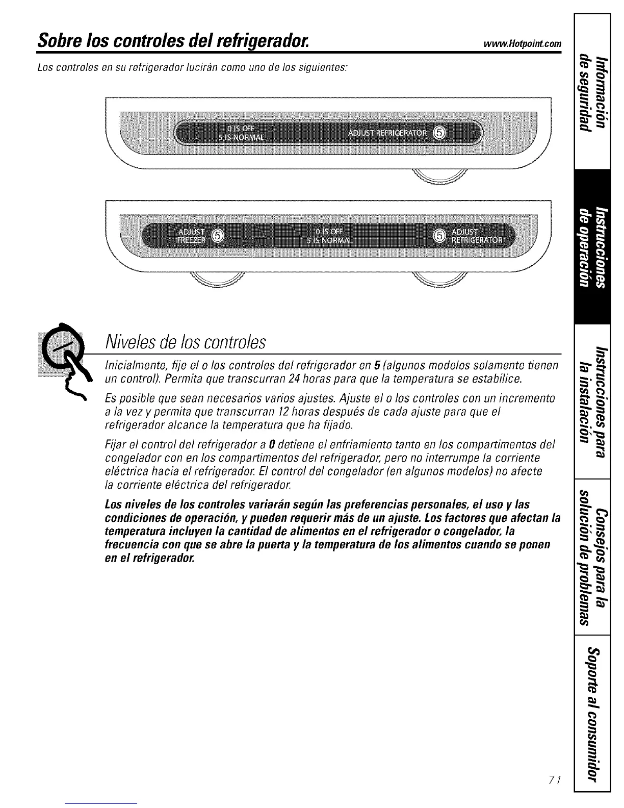 Inicialmente, fije el o los controles del refrigerador en 5 (algunos modelos solamente fienen