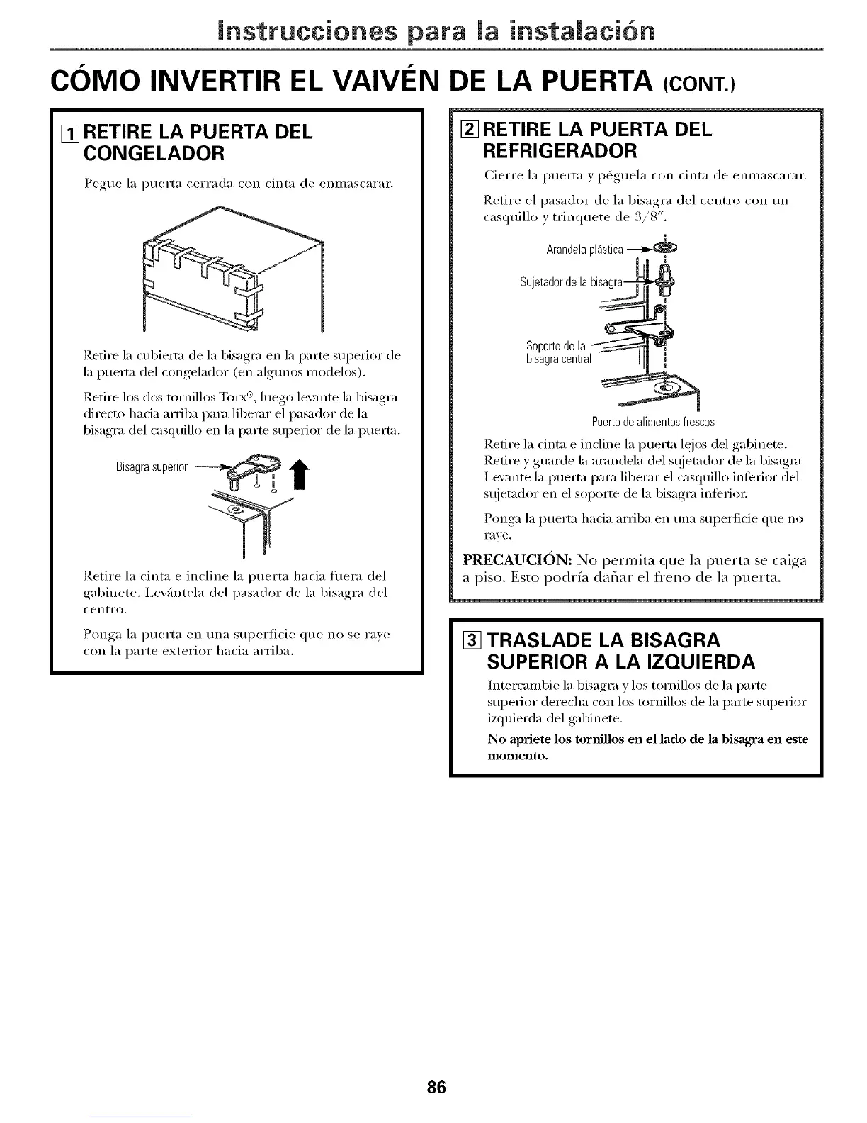 PRECAUCION: No permita que la puerta se caiga