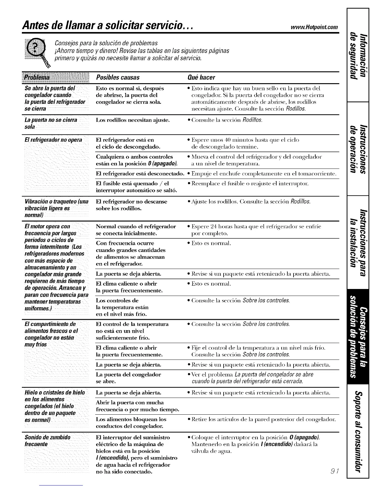 E1 refrigerador estll desconectado. * Enq)uje el enchtde couq)letmuente en el tomacorriente.
