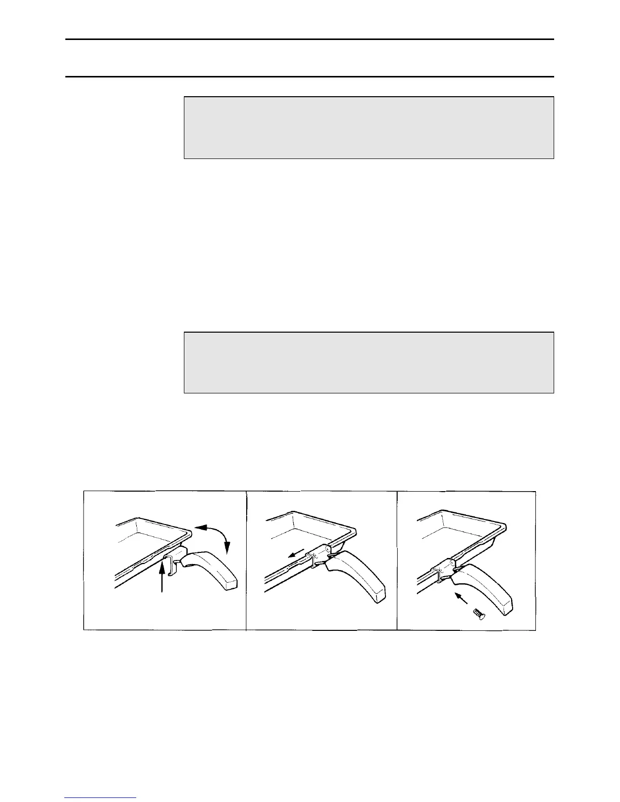 ● Fix the grill pan handle securely in position. See below.