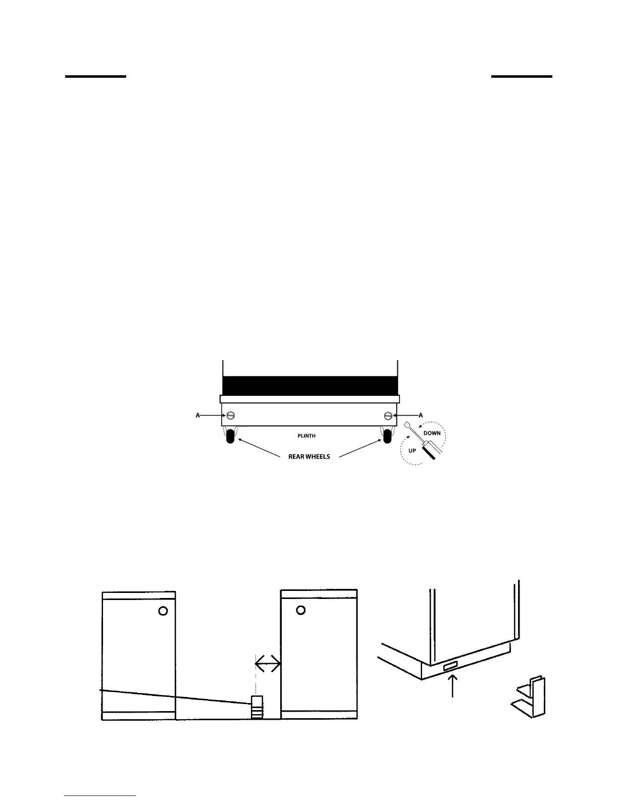 the levelling screws ‘A’ in the plinth.