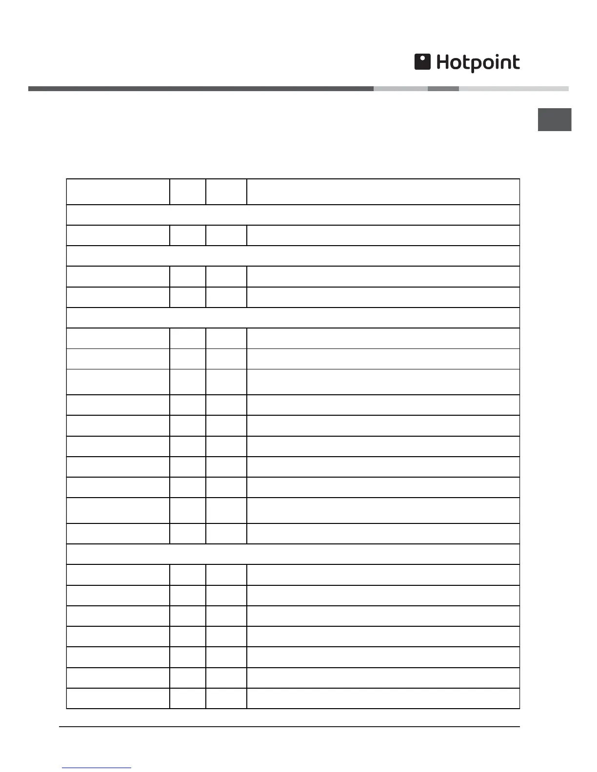 Main Oven Cooking Chart
