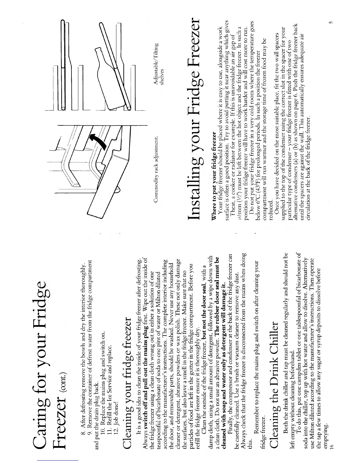 Hotpoint 8326 - Caring for your Fridge Freezer; Cleaning your fridge freezer; Cleaning the Drink Chiller; Installing your Fridge Freezer