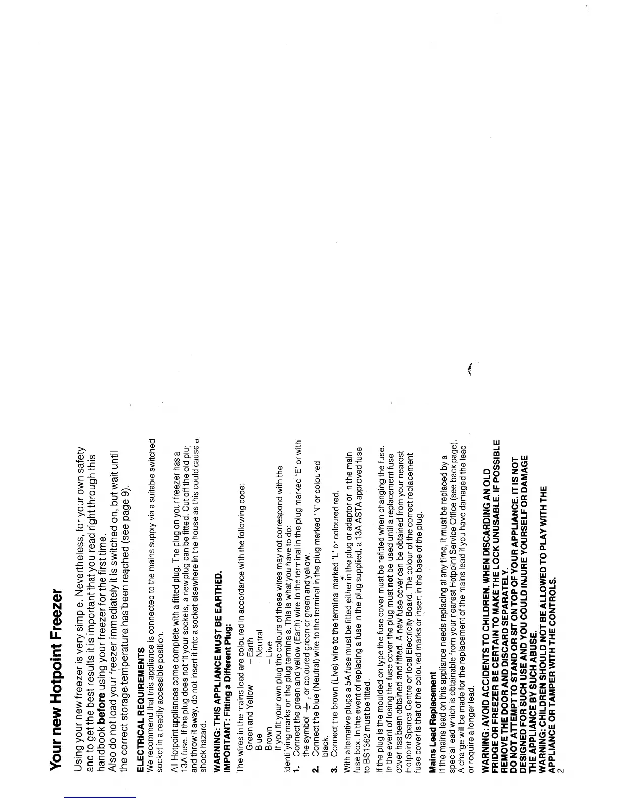 Hotpoint 8709 - Electrical Requirements and Safety; Appliance Earthing and Plug Safety; Mains Lead and General Safety