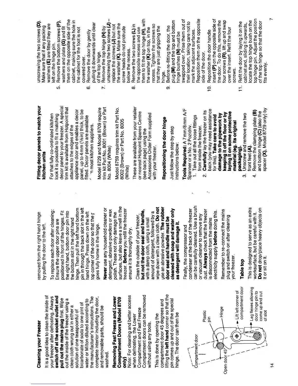 Hotpoint 8709 - Cleaning and Maintaining Your Freezer; Interior and Exterior Cleaning; Repositioning the Door Hinge