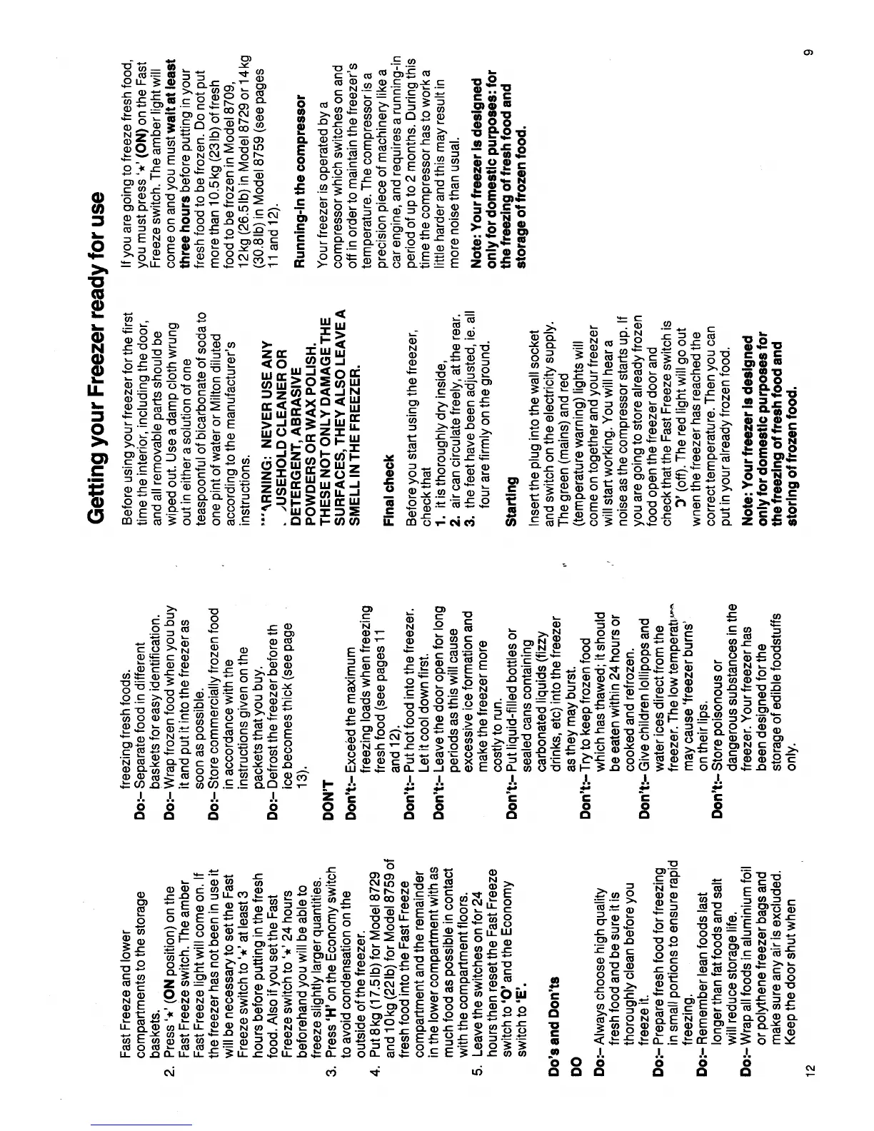 Hotpoint 8709 - Getting Your Freezer Ready and Freezing Food; Initial Setup and Starting Procedures; Dos and Donts for Freezing Food