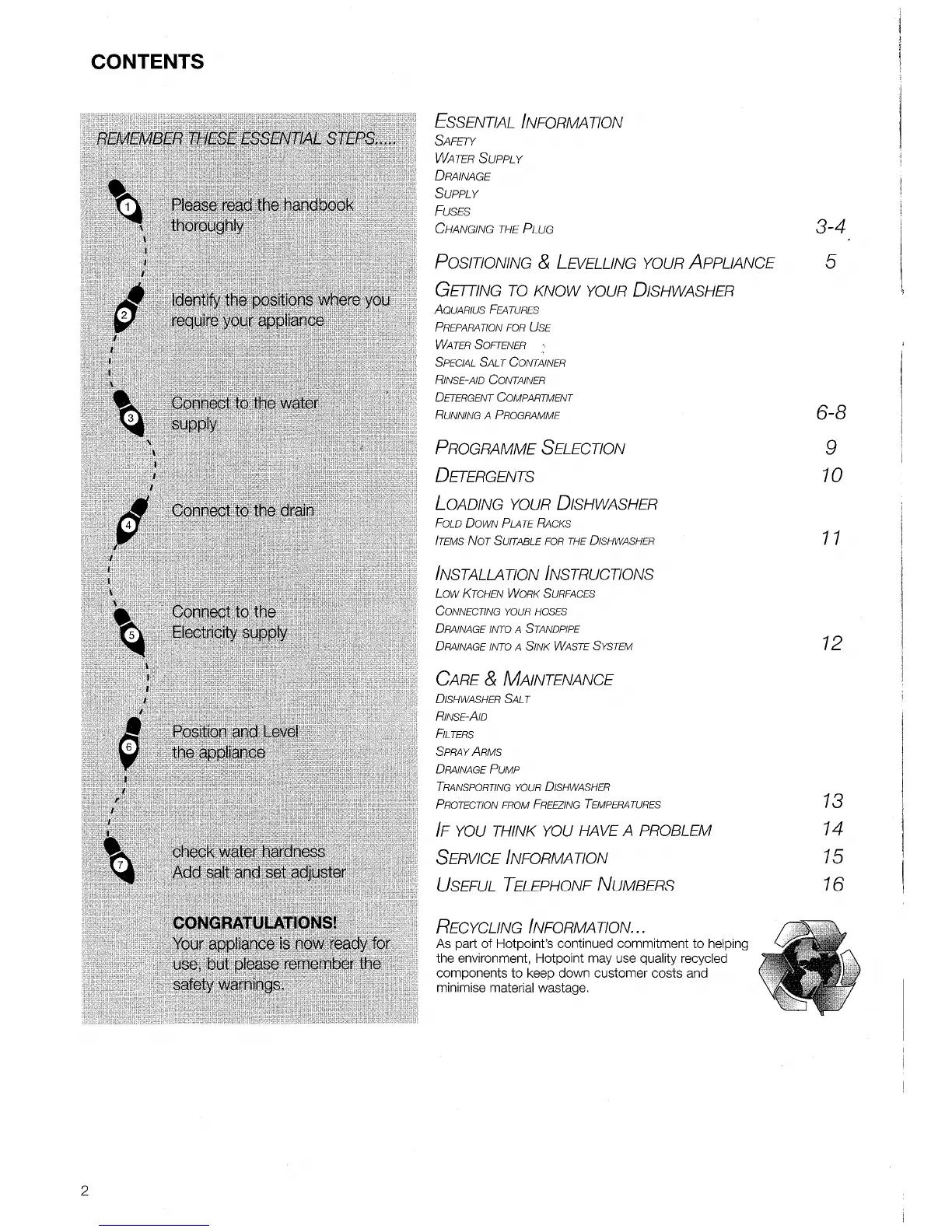 Hotpoint Aquarius DF62 - Contents