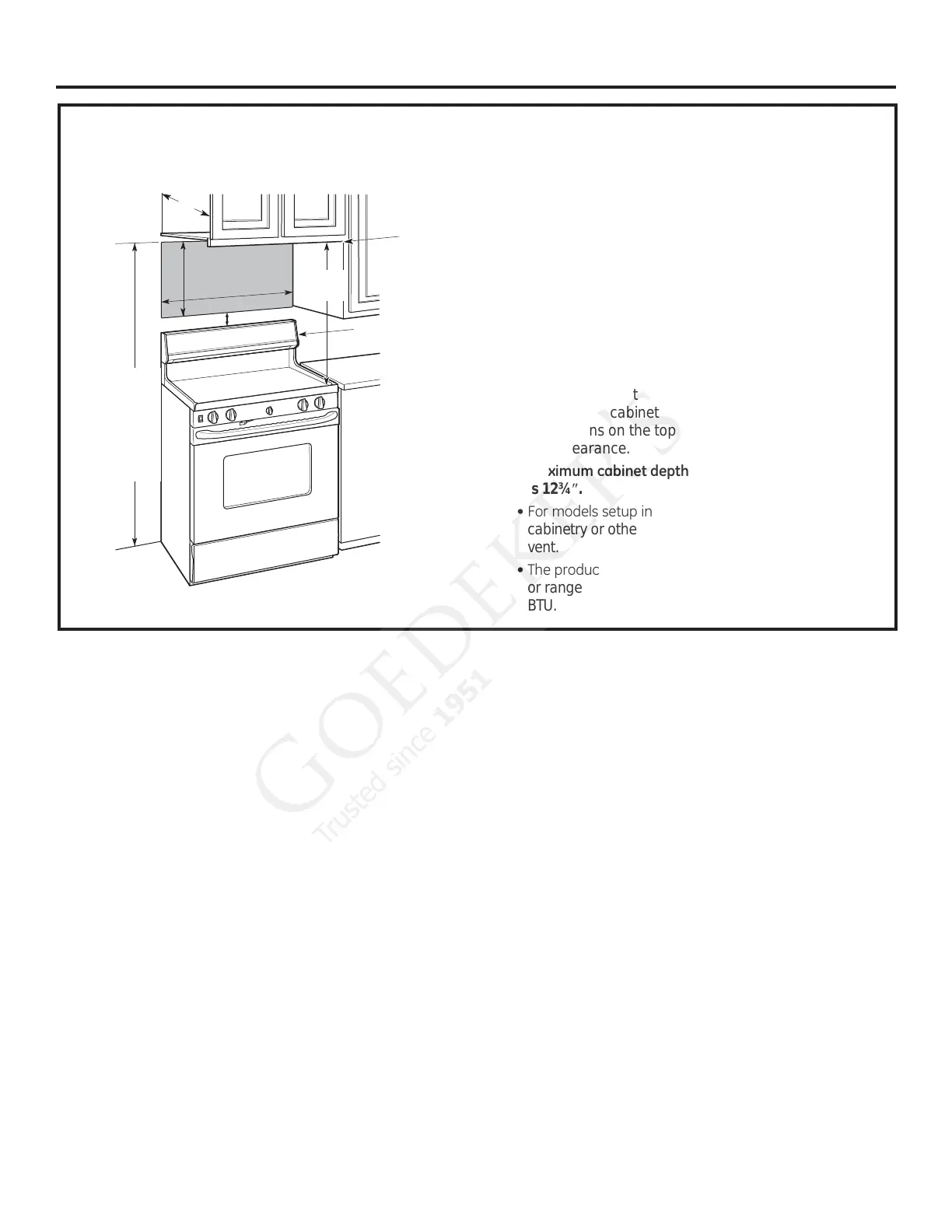 cabinetry or other objects to block the airflow of the