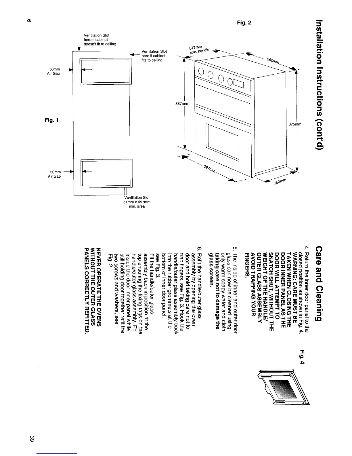Hotpoint BD31 - Appliance Care and Cleaning Instructions; Installation Diagrams and Ventilation Slots