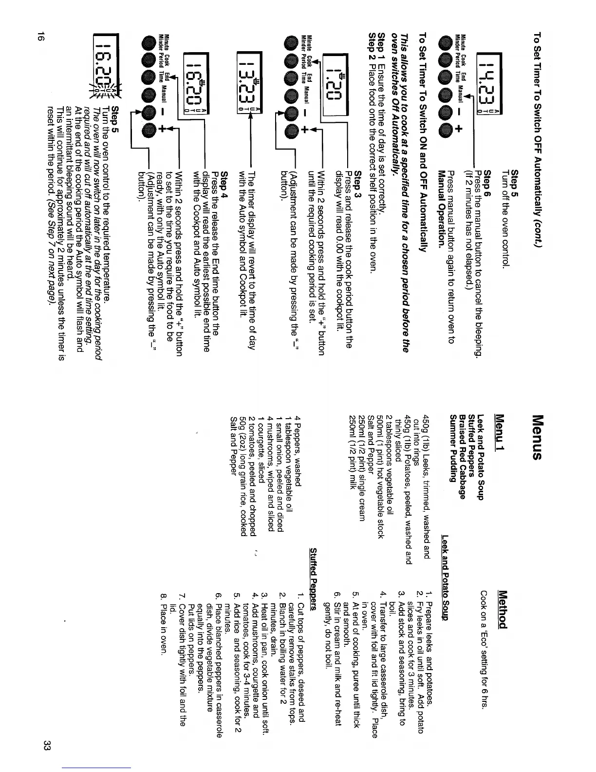 Hotpoint BD81 - Advanced Timer Functions; Automatic Switch-On and Switch-Off