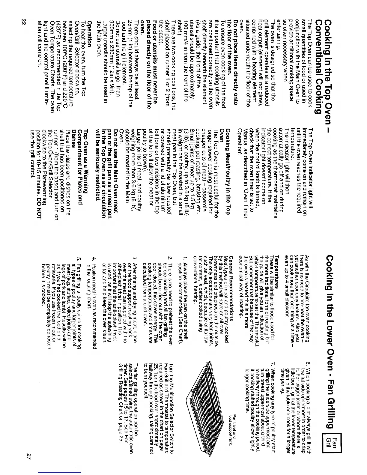 Hotpoint BD81 - Top Oven Conventional Cooking; Top Oven Conventional Cooking Operation; Cooking Meat;Poultry in Top Oven; Lower Oven Fan Grilling Operation