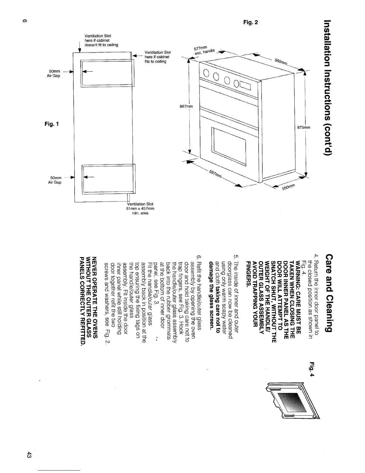 Hotpoint BD81 - Care and Cleaning; Inner Door Panel and Glass; Handle;Outer Glass Assembly; Important Note on Door Panels