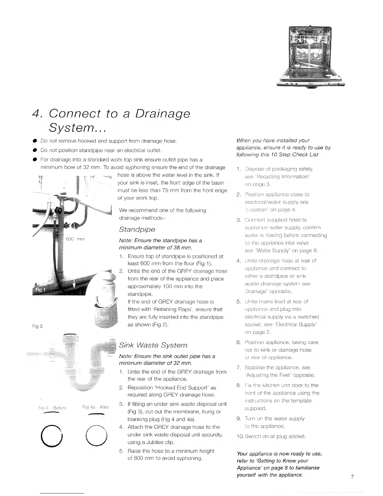 Hotpoint BF41 - Connect to a Drainage System; Sink Waste System