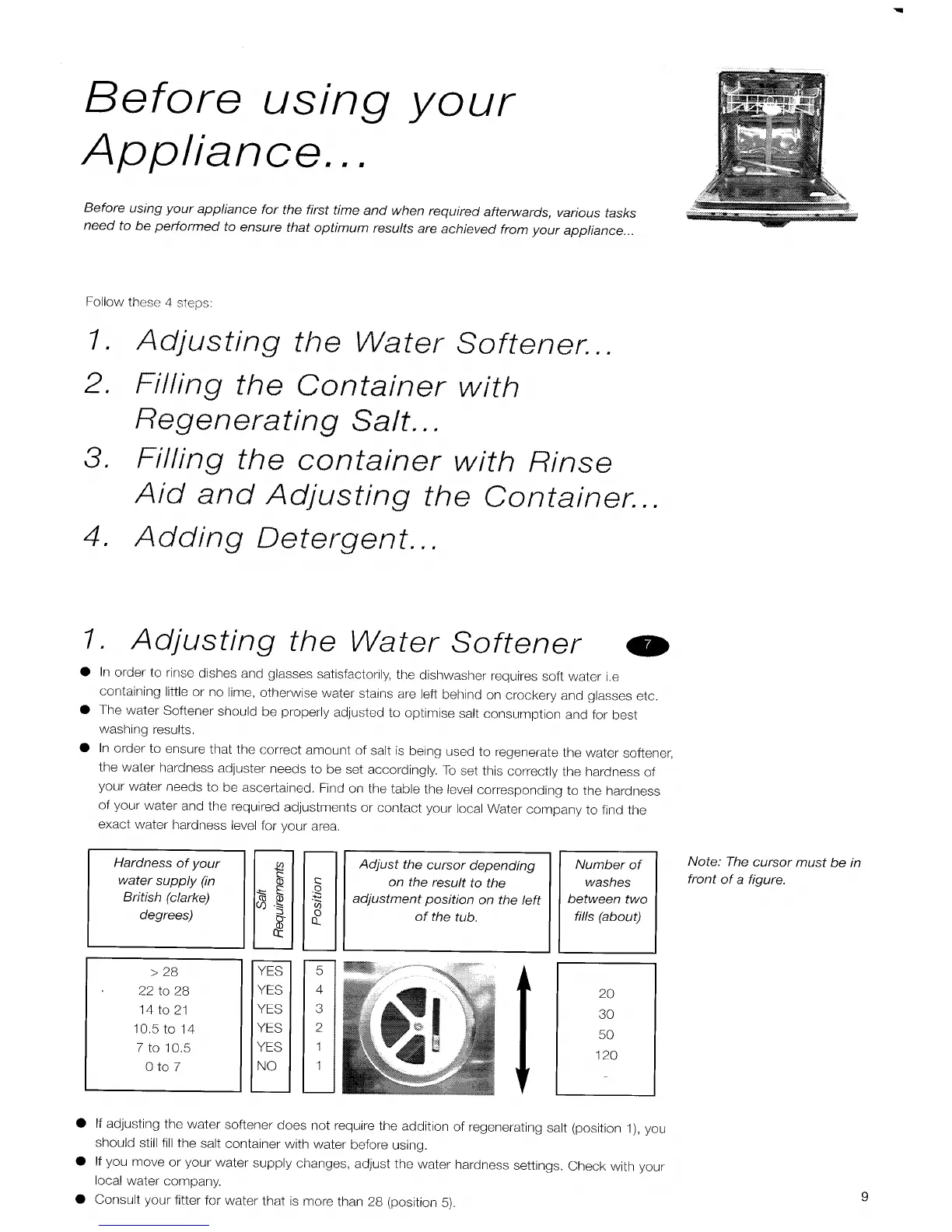 Hotpoint BF41 - Before Using Your Appliance; Adjusting the Water Softener