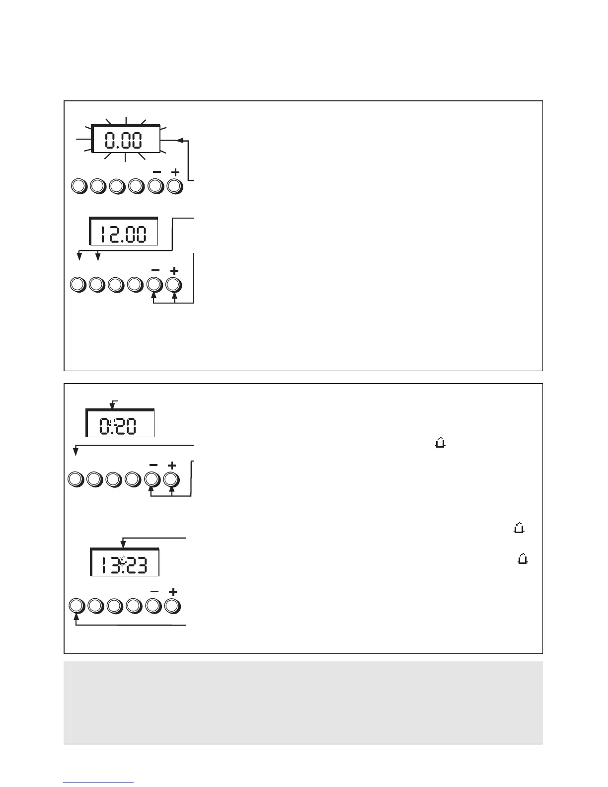 press either the “+” or “–” buttons to set the correct time of day.