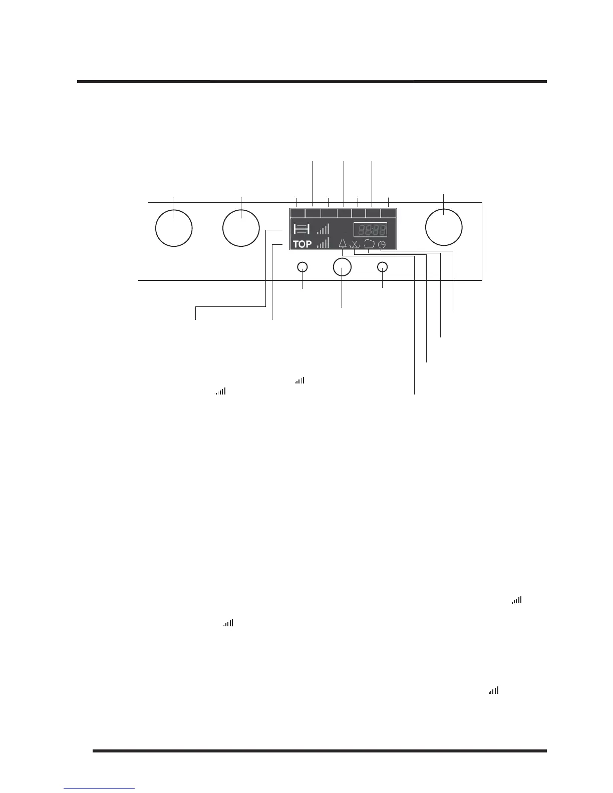 The top oven ON indicator (TOP) and the top oven preheat temperature indicator (