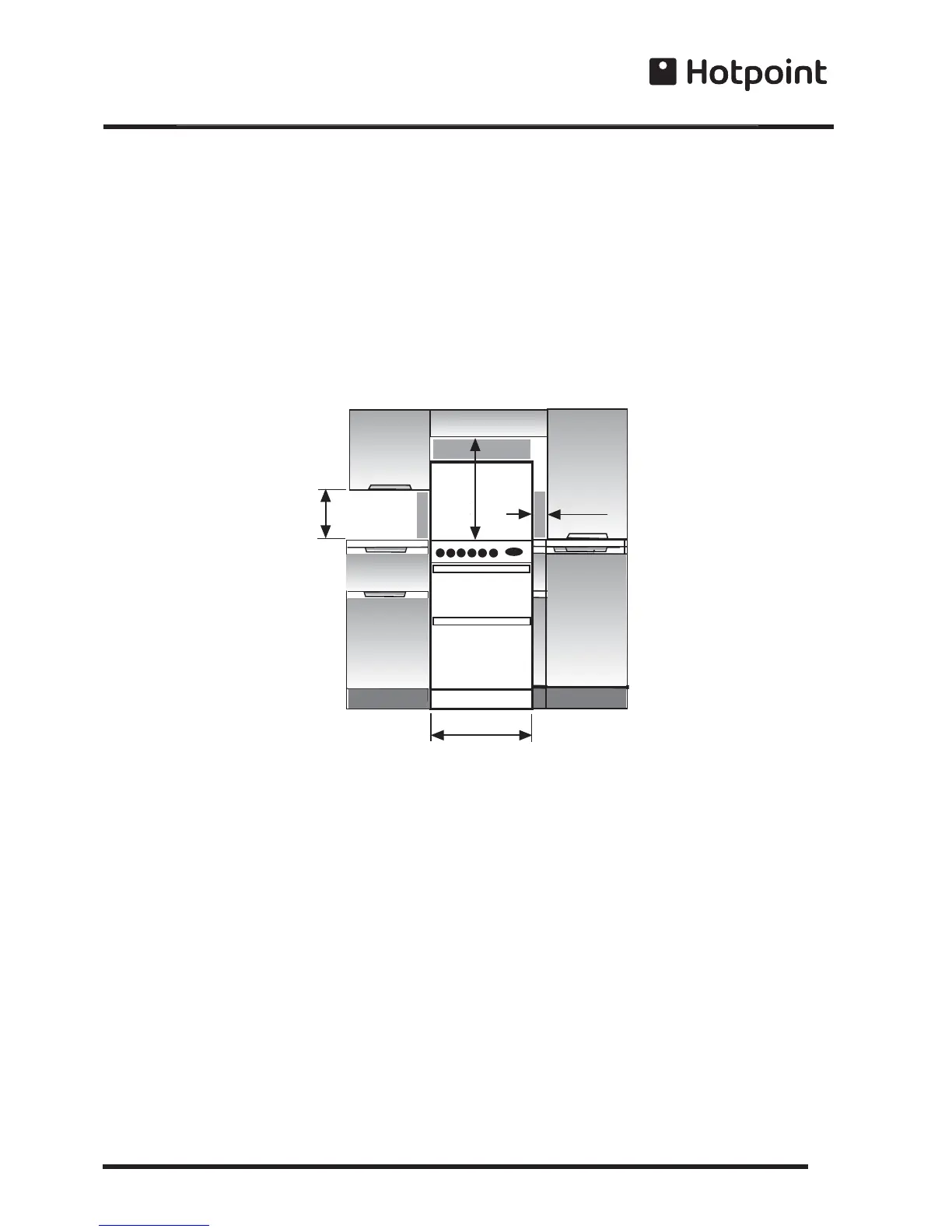 The cooker can be close fitted below hotplate level. This requires a minimum distance of 600mm between cupboard