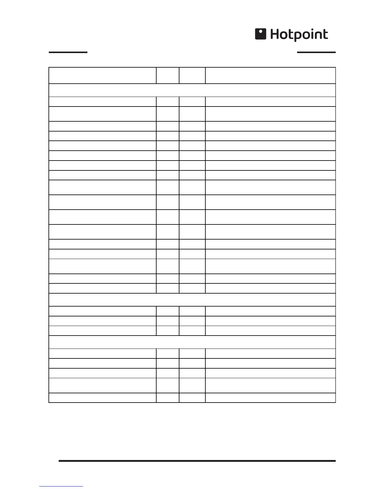 MAIN OVEN COOKING CHART