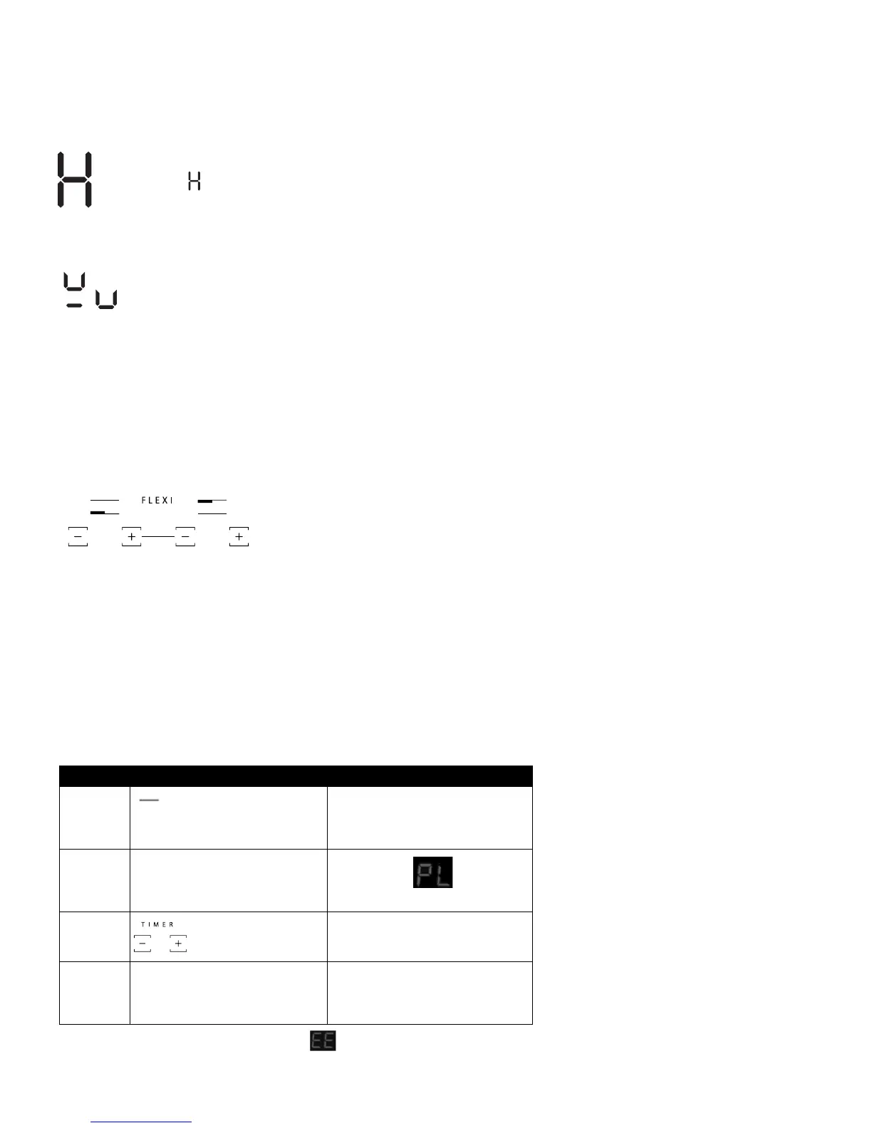 To activate the function, press the “+” button until “P” appears on the display. After 5 minutes’ use of the booster function, the appliance automatically sets the zone