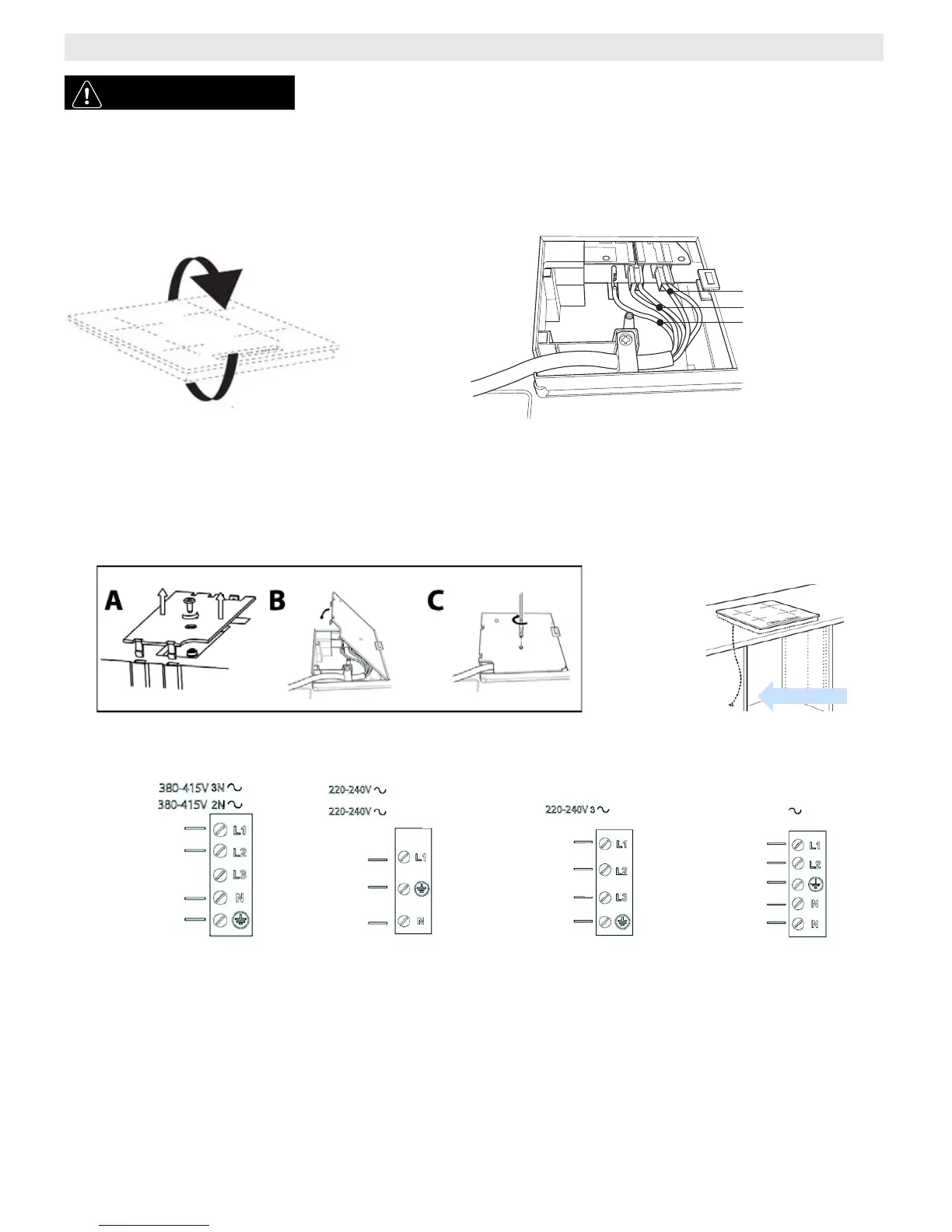 - The power cable must be long enough to allow the hob to be removed from the worktop.