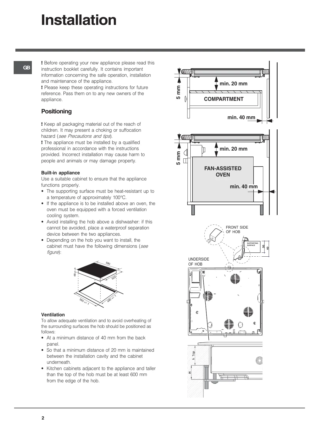 the surrounding surfaces the hob should be positioned as
