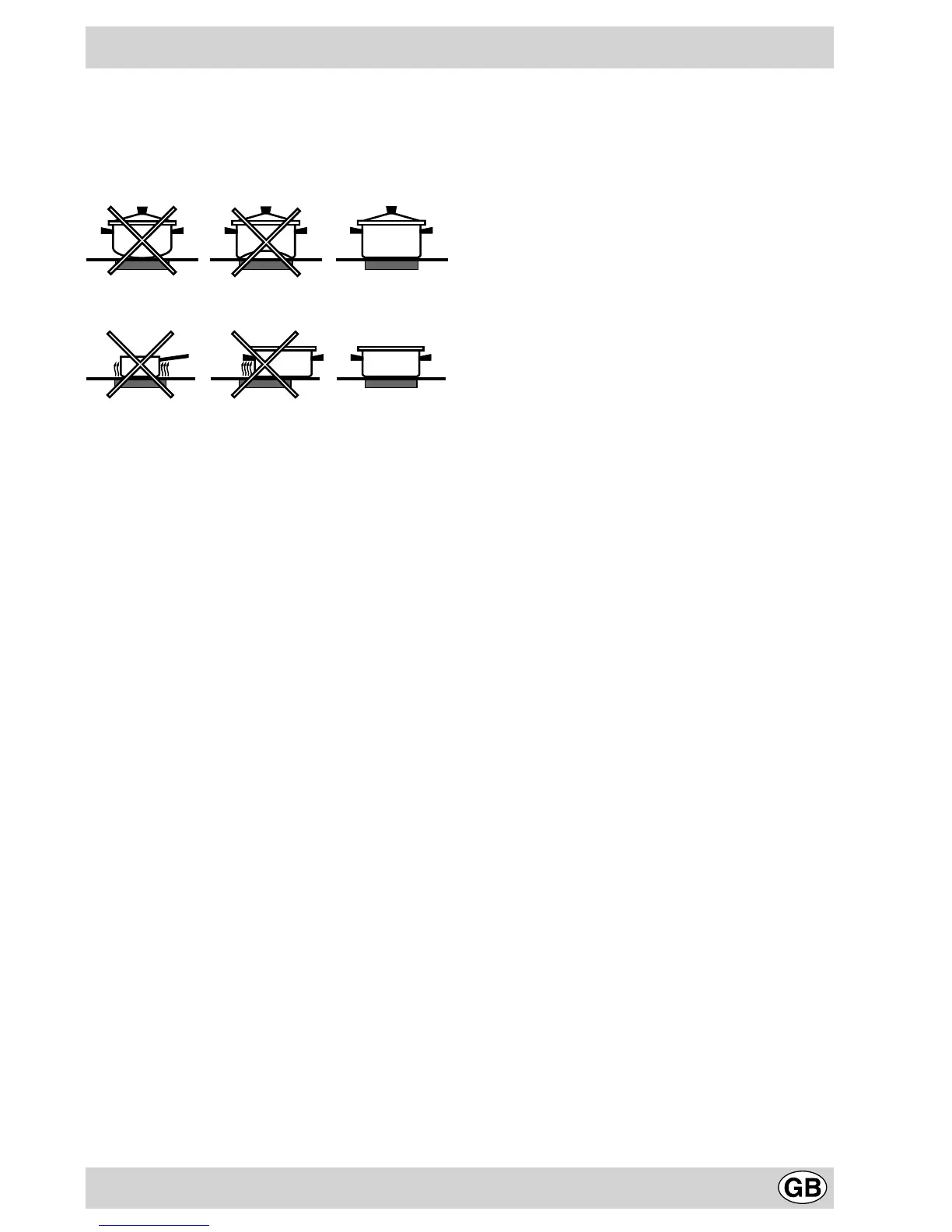 • Always use pans whose diameter covers the cooking