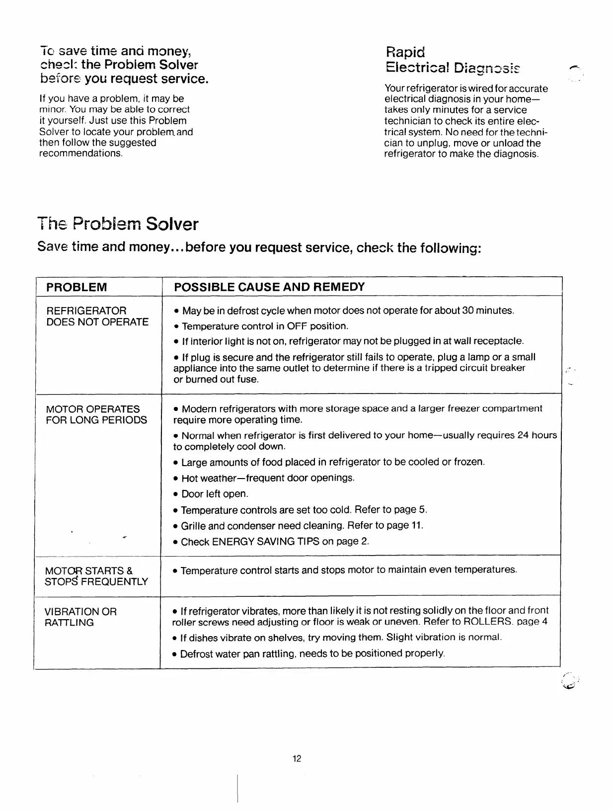 ● If refrigeratorvibrates,morethanlikely it is not resting solidly on the floor and front