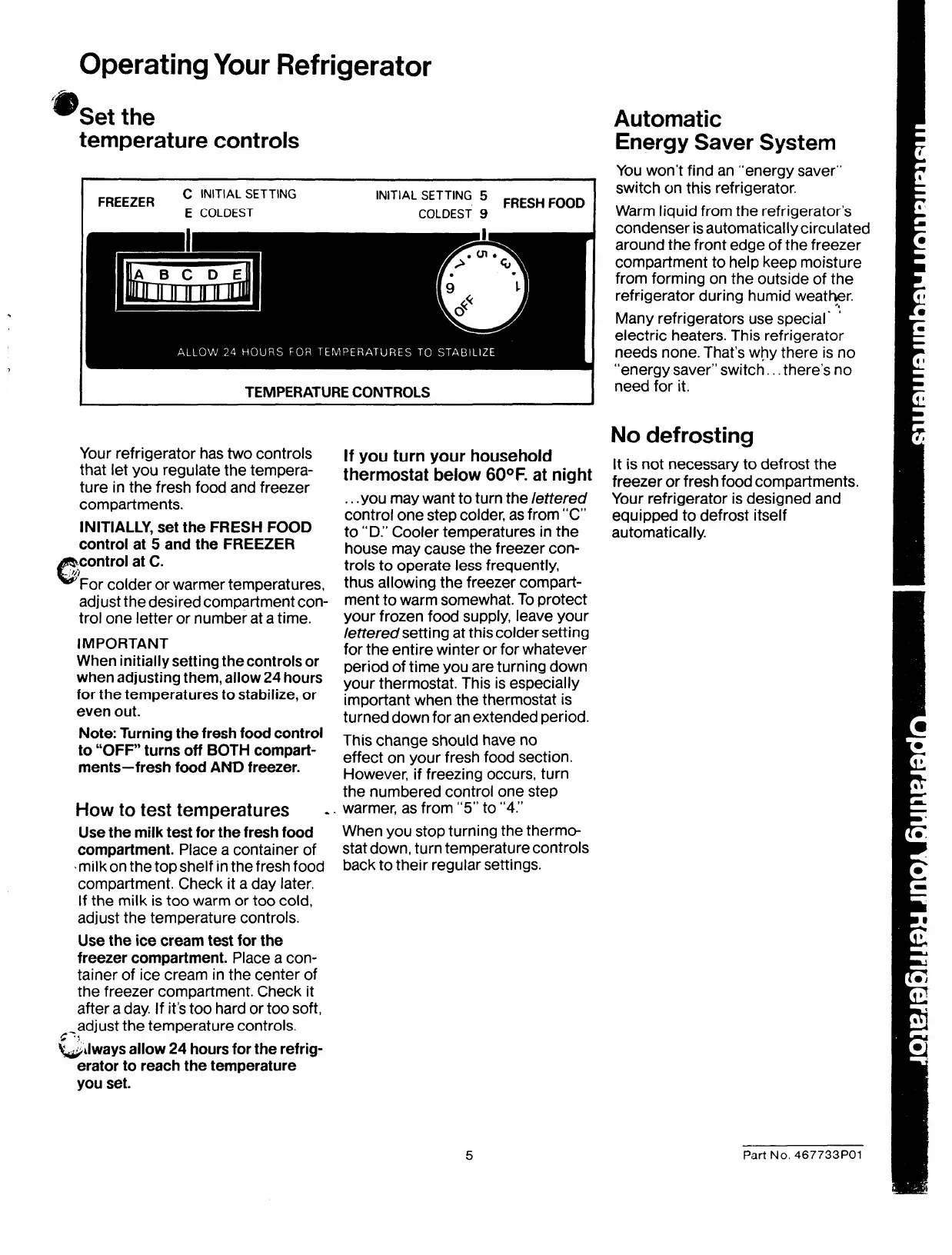‘milk on the top shelf in the fresh food back to their regular settings.