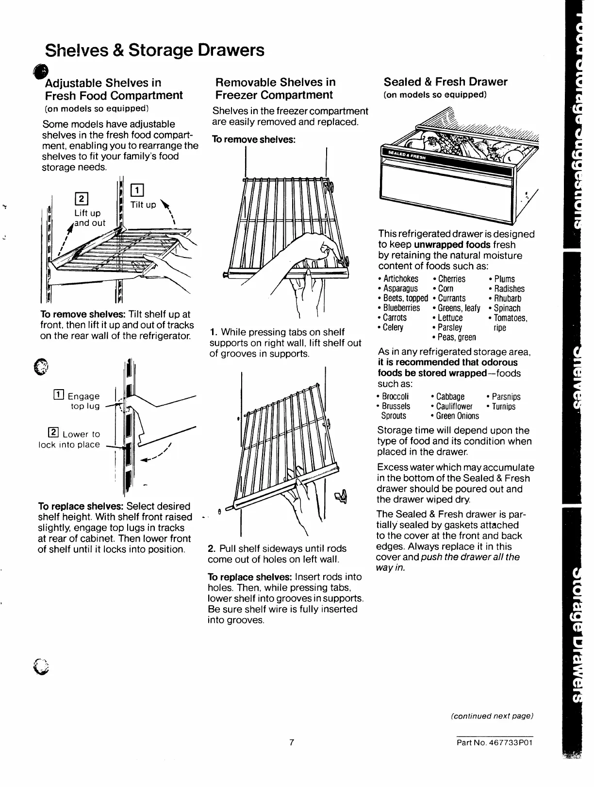 To remove shelves: Tilt shelf up at