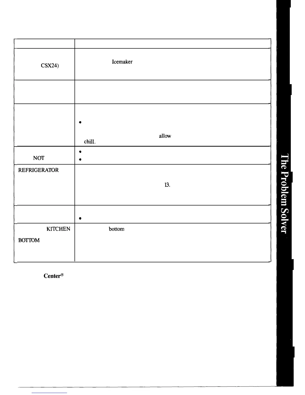 ● No ice cubes. Icemaker turned off or water supply turned off.