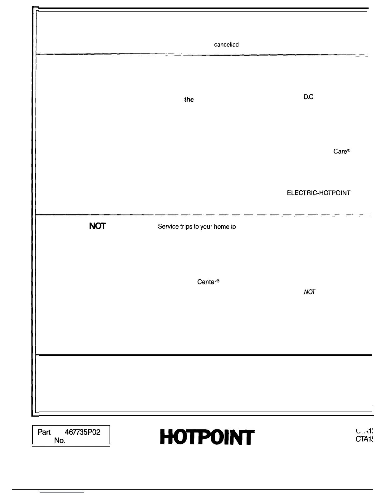 FACTORY SERVICE or HOTPOINT