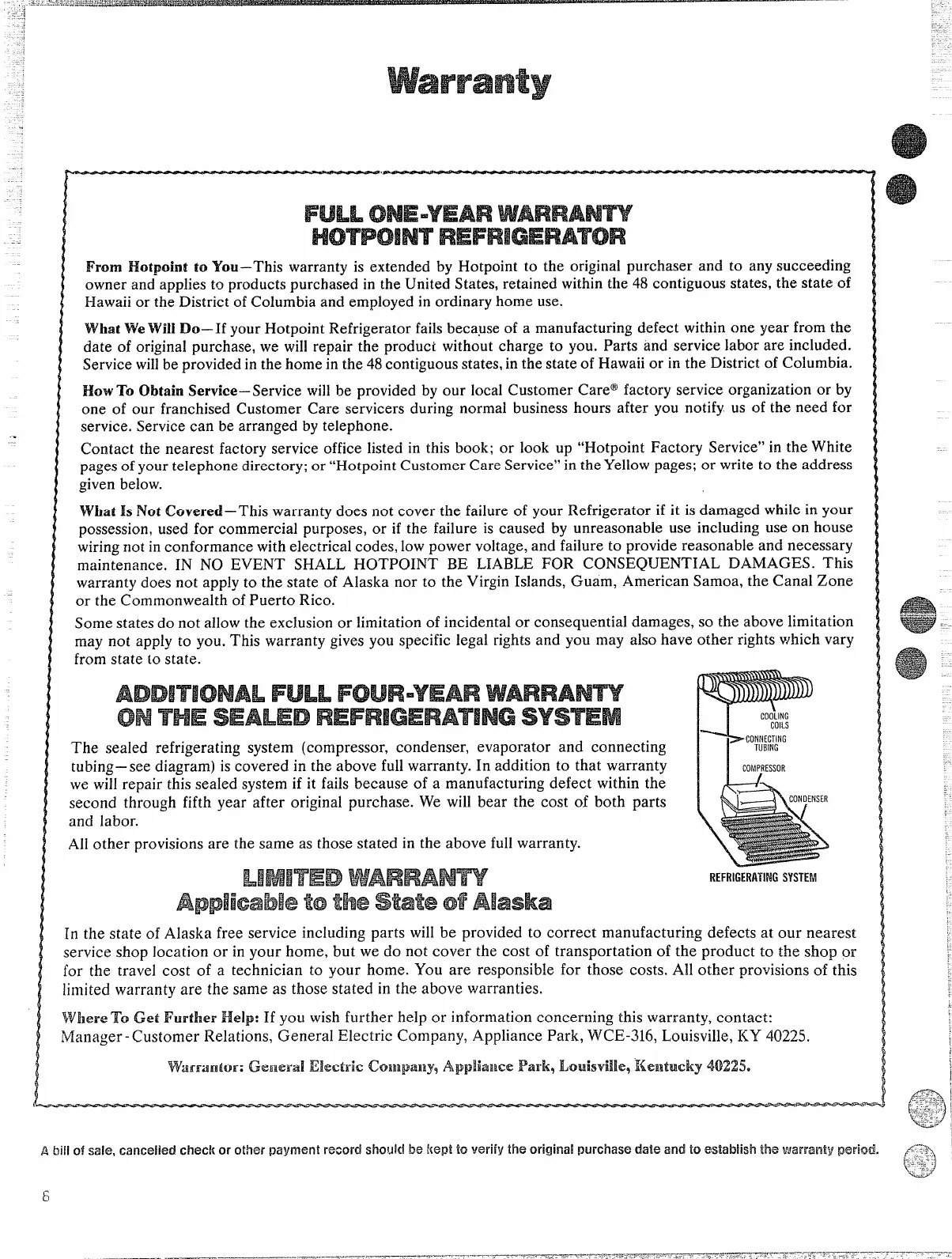 From Hotpoint to You–This warranty is extended by Hotpoint to the original purchaser and to any succeeding