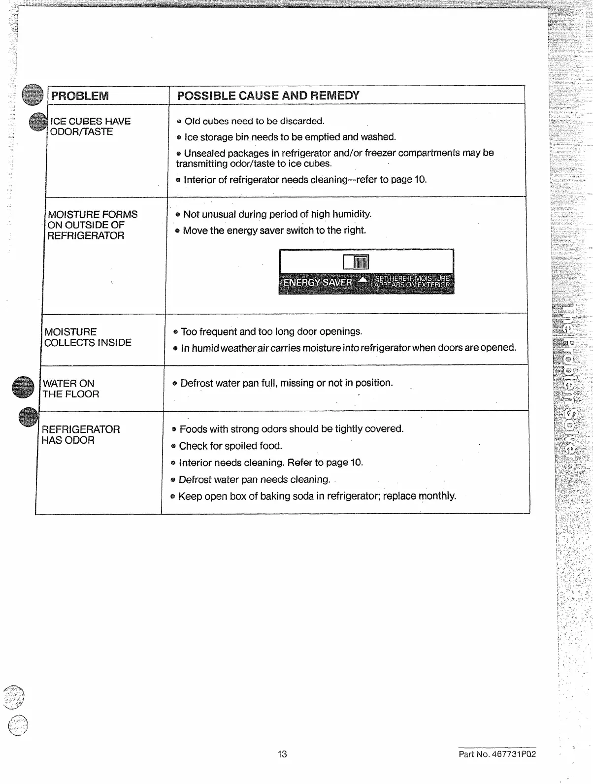 ~ Defrost water pan needs cleaning.