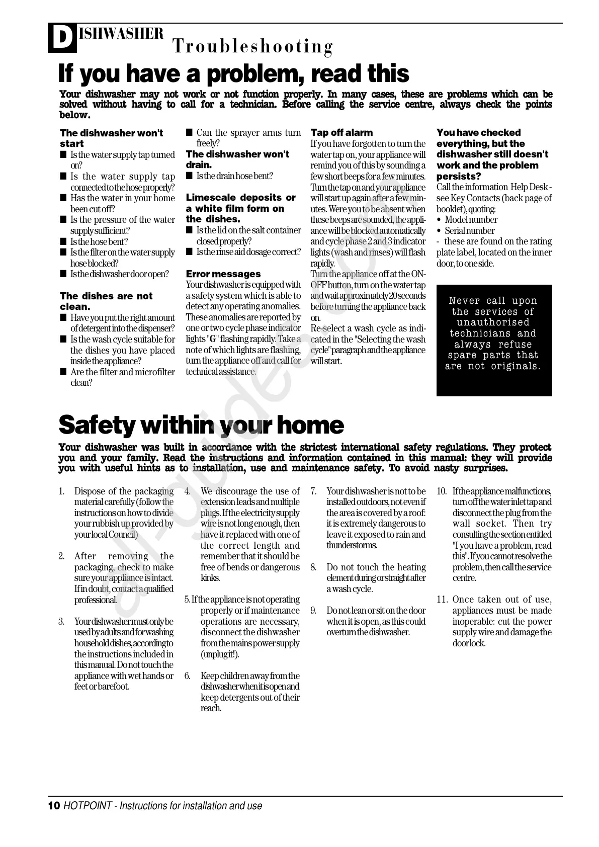 Your dishwasher was built in accordance with the strictest international safety regulations. They protect