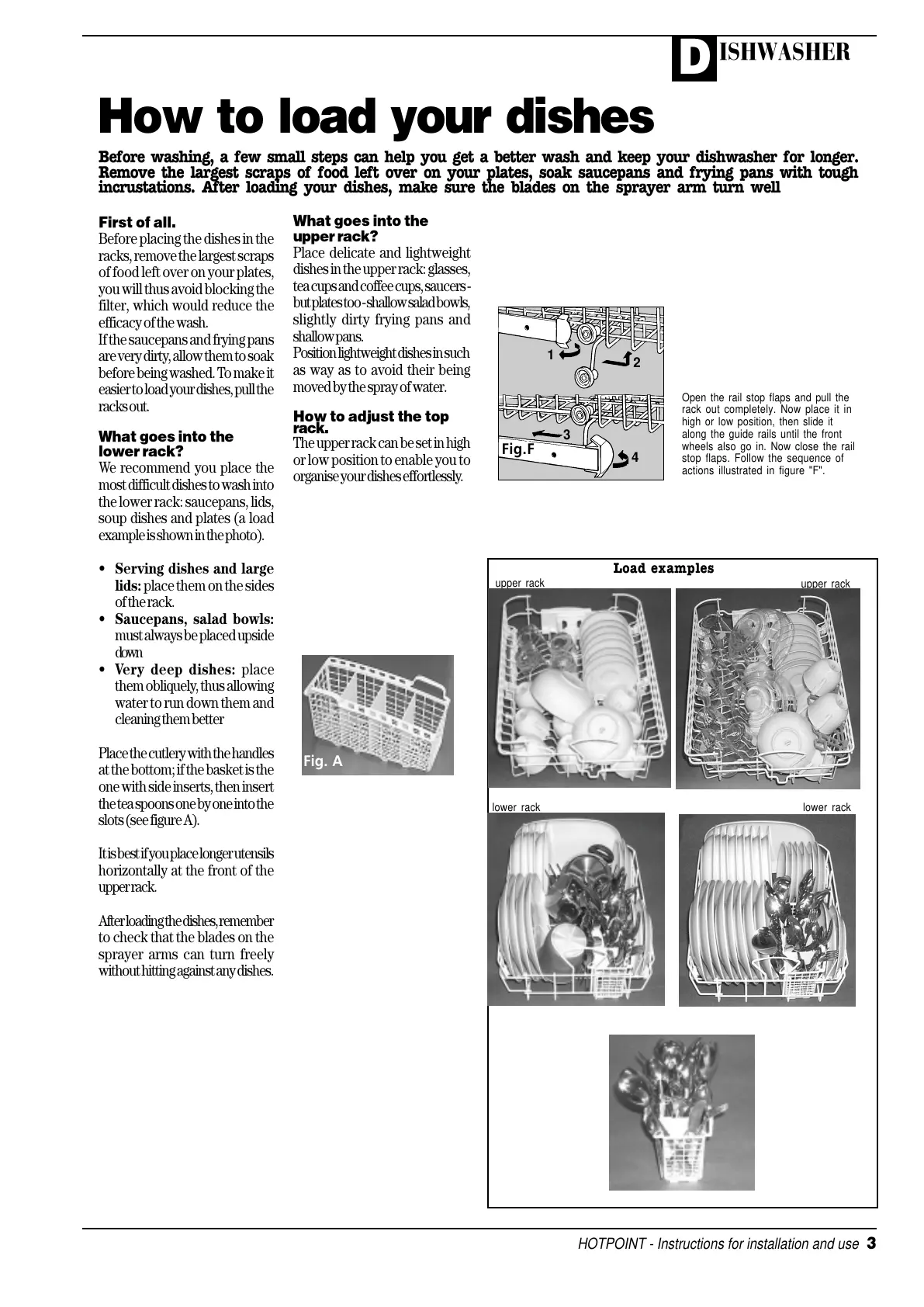 incrustations. After loading your dishes, make sure the blades on the sprayer arm turn well