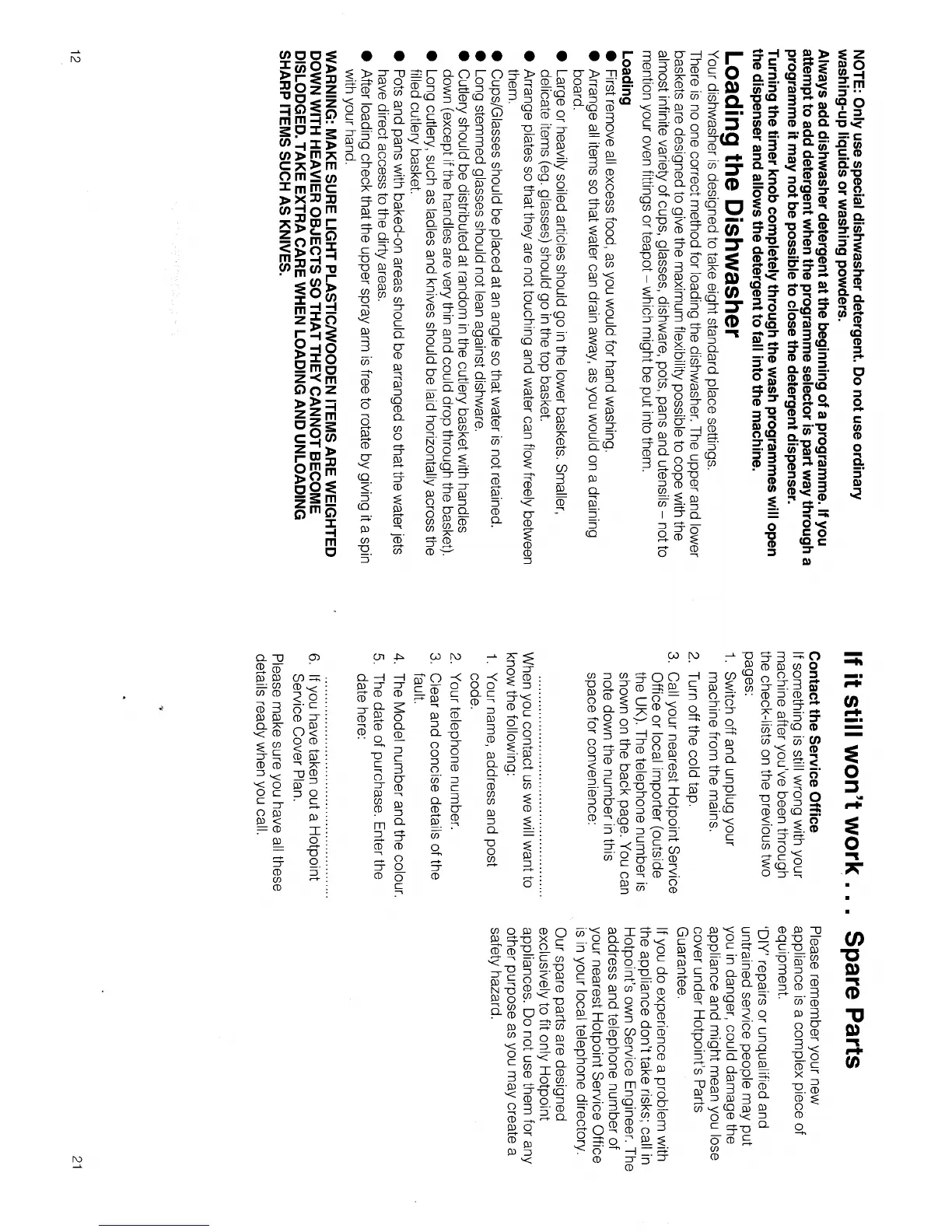 Hotpoint DC23/24 - Loading the Dishwasher; Loading Guidelines