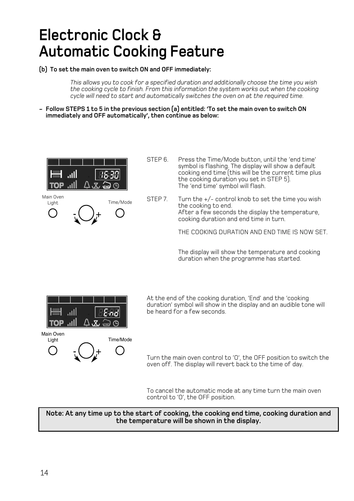 - Follow STEPS 1 to 5 in the previous section (a) entitled: ‘To set the main oven to switch ON