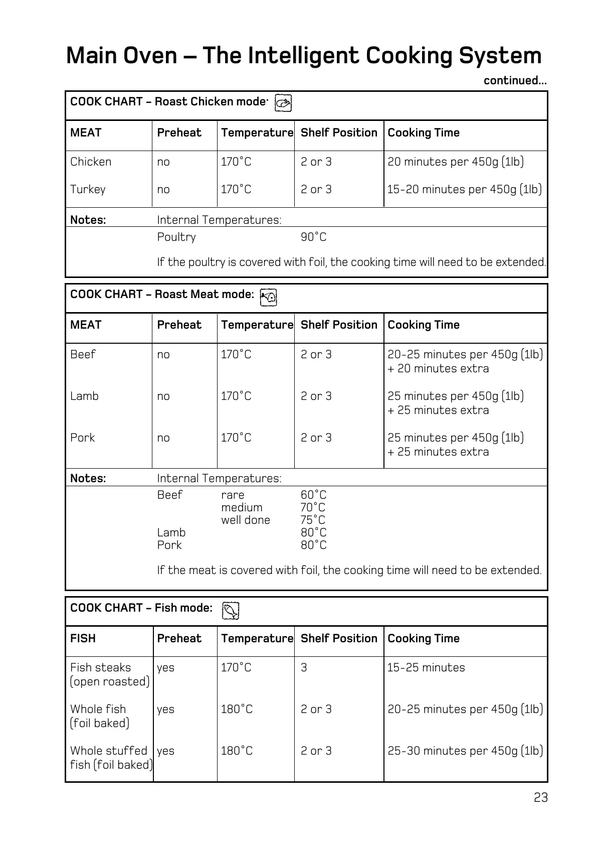 COOK CHART - Roast Meat mode: