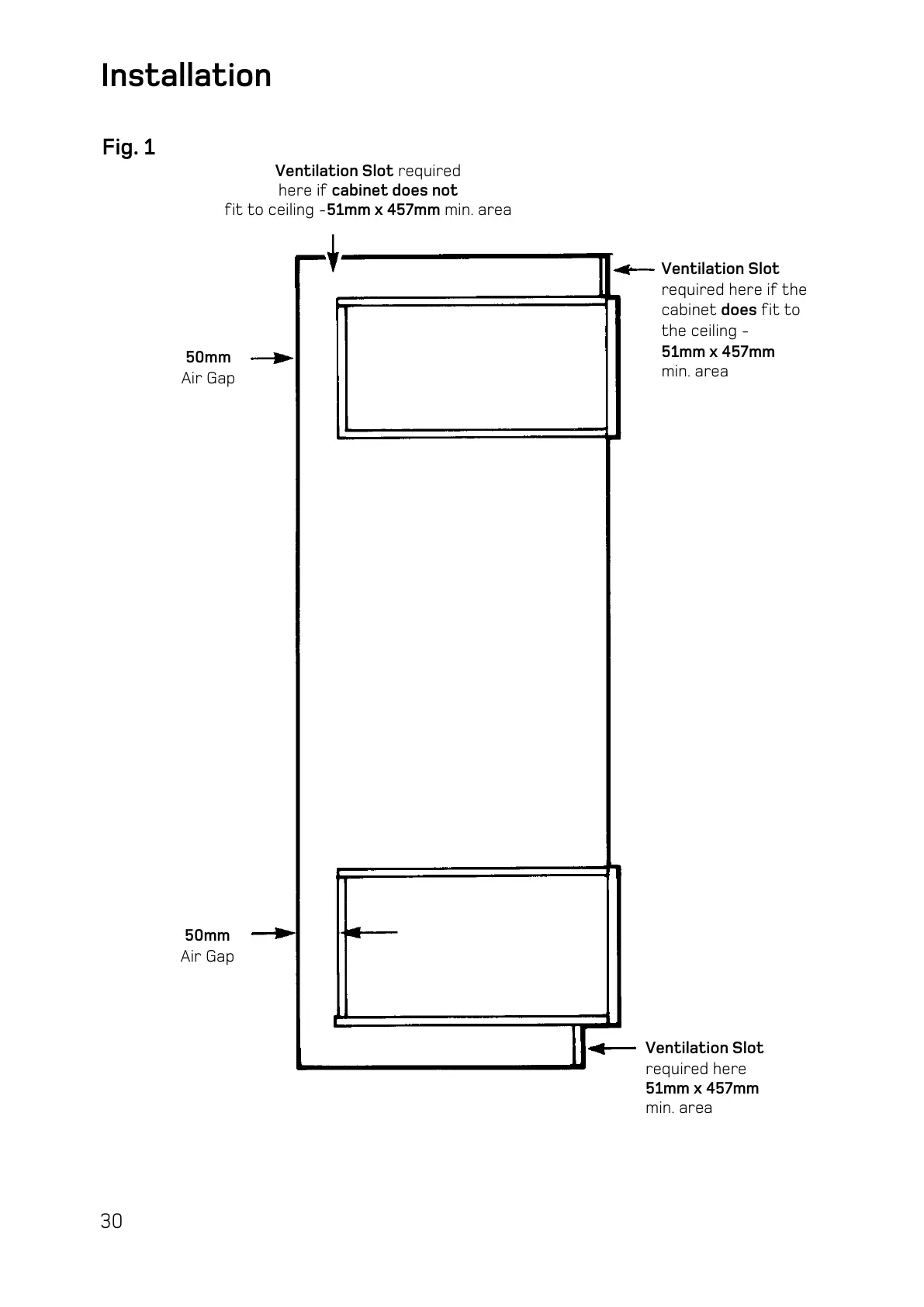 fit to ceiling -51mm x 457mm min. area