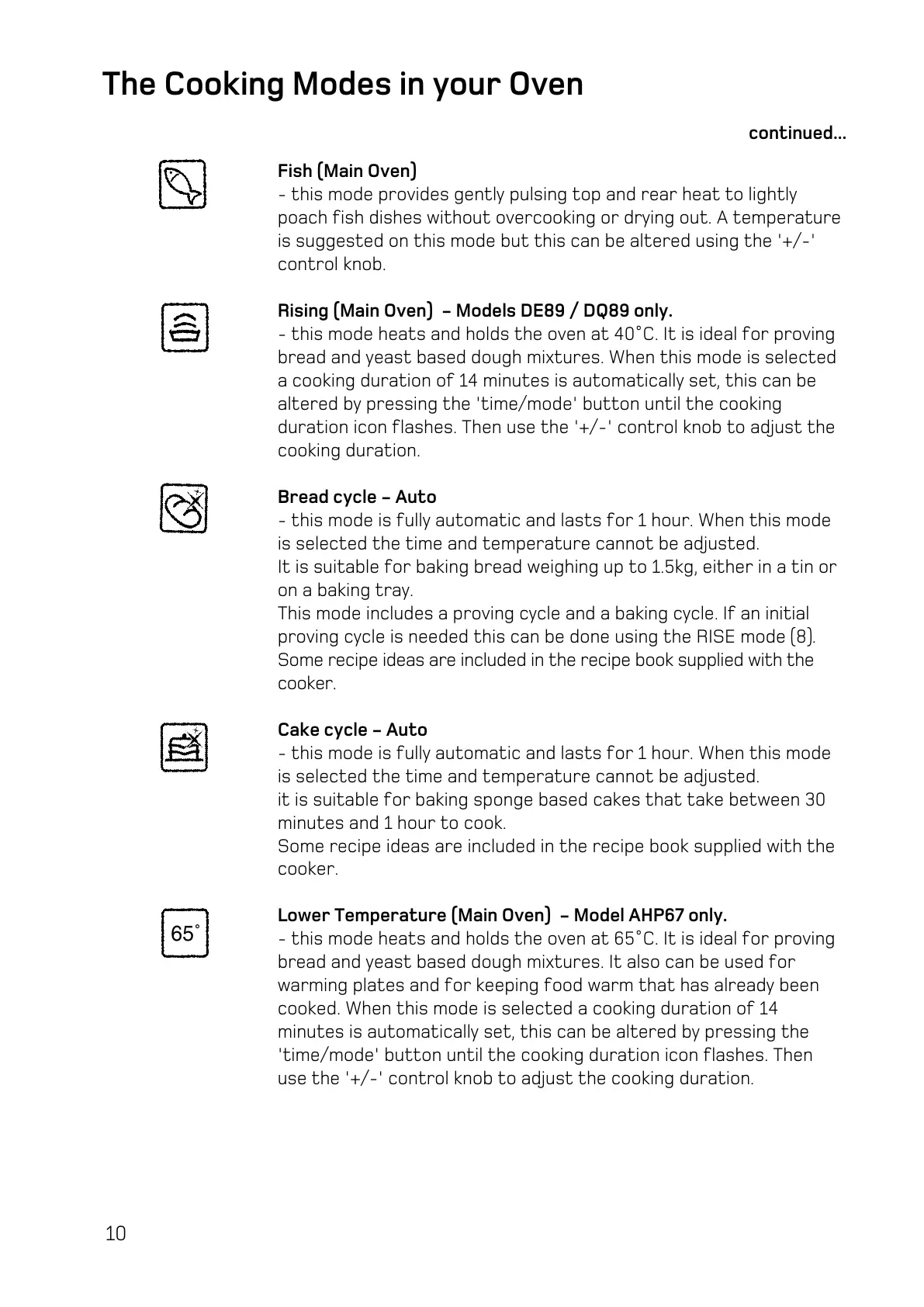 Lower Temperature (Main Oven) - Model AHP67 only.