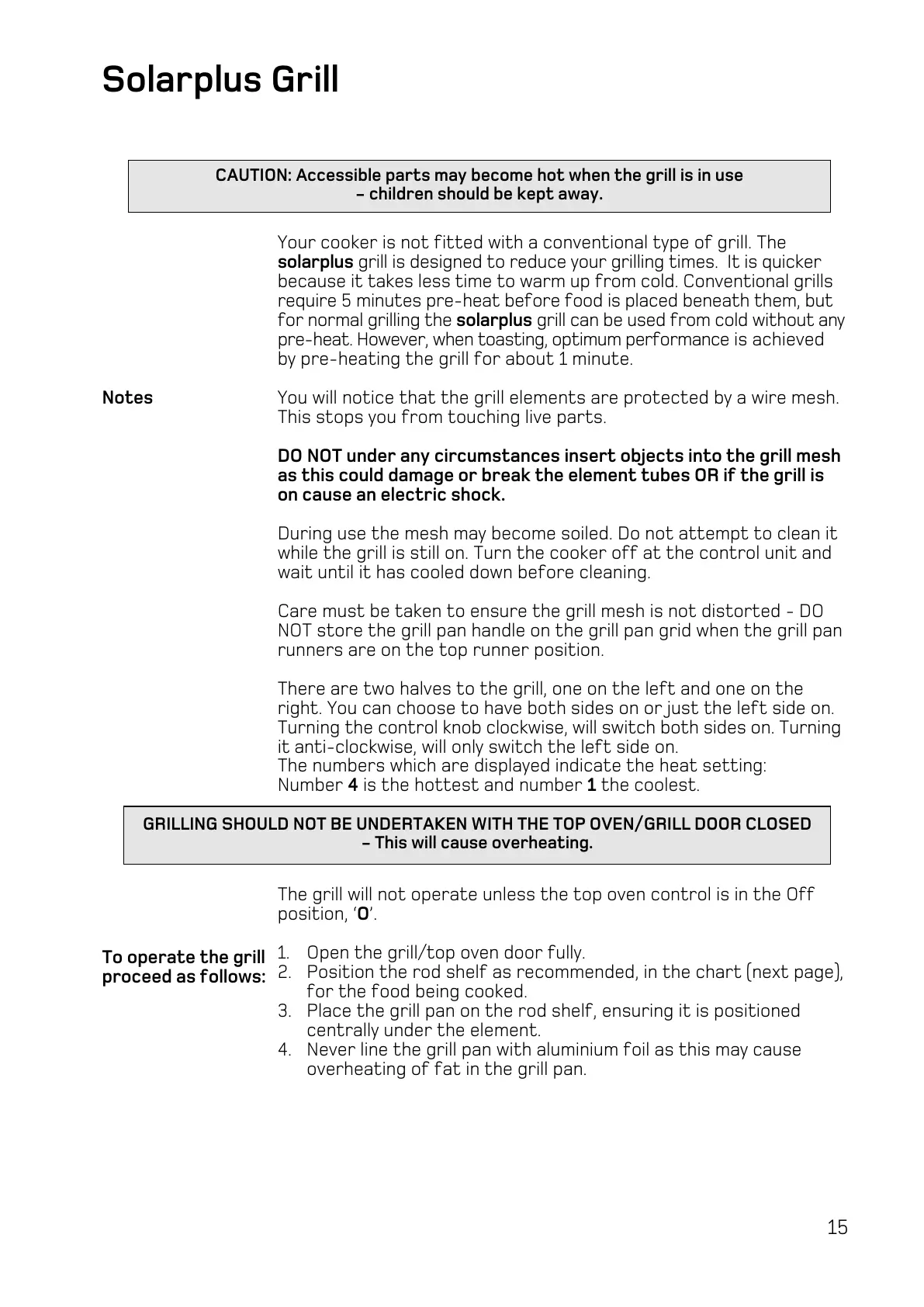 GRILLING SHOULD NOT BE UNDERTAKEN WITH THE TOP OVEN/GRILL DOOR CLOSED