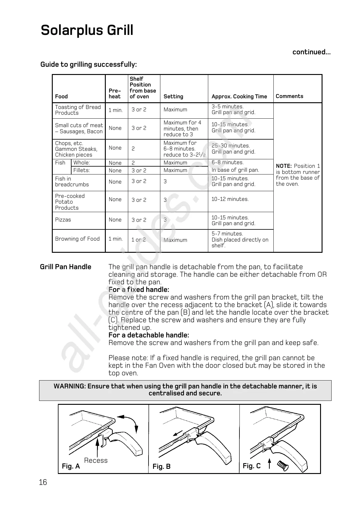 WARNING: Ensure that when using the grill pan handle in the detachable manner, it is