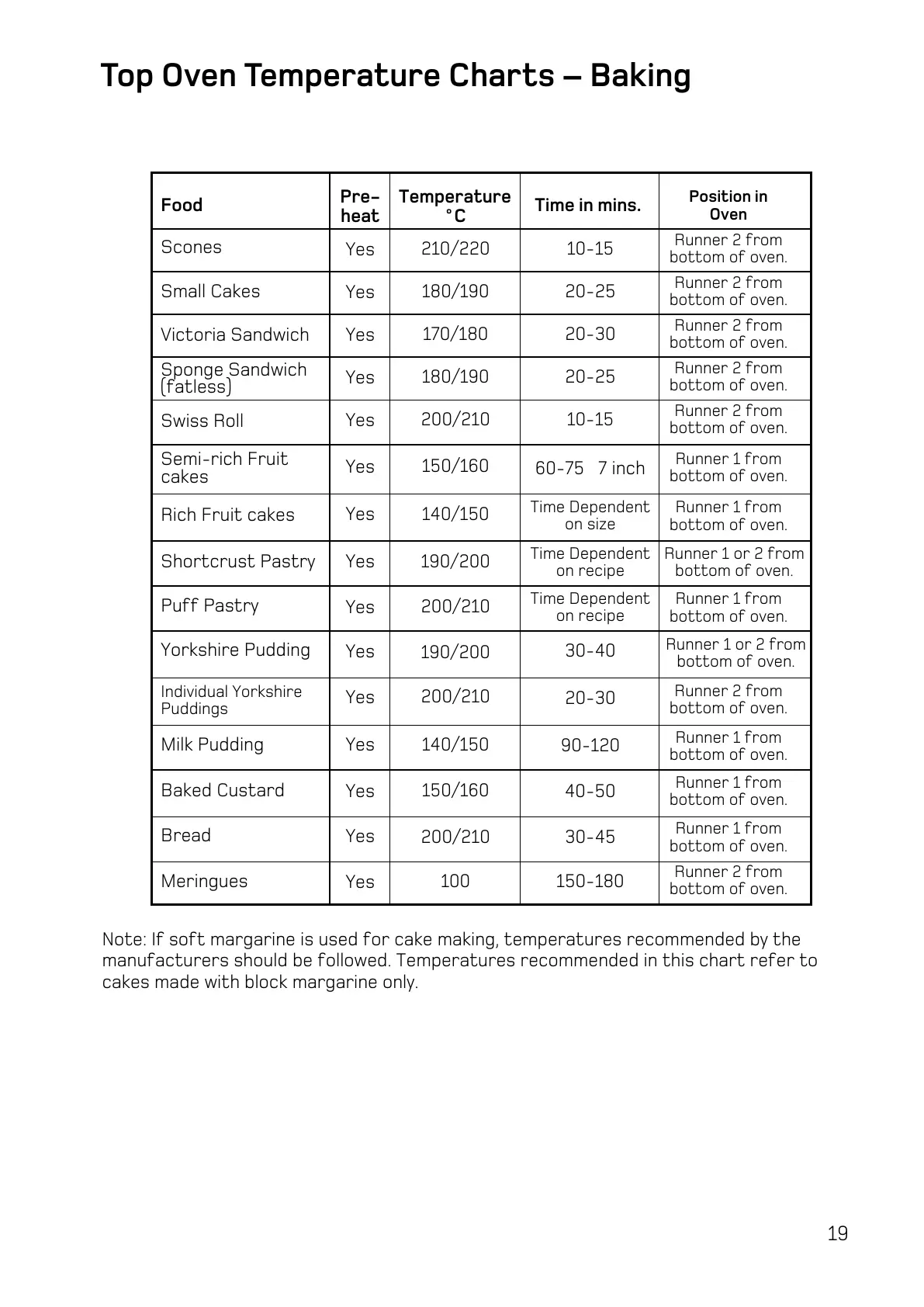 Note: If soft margarine is used for cake making, temperatures recommended by the