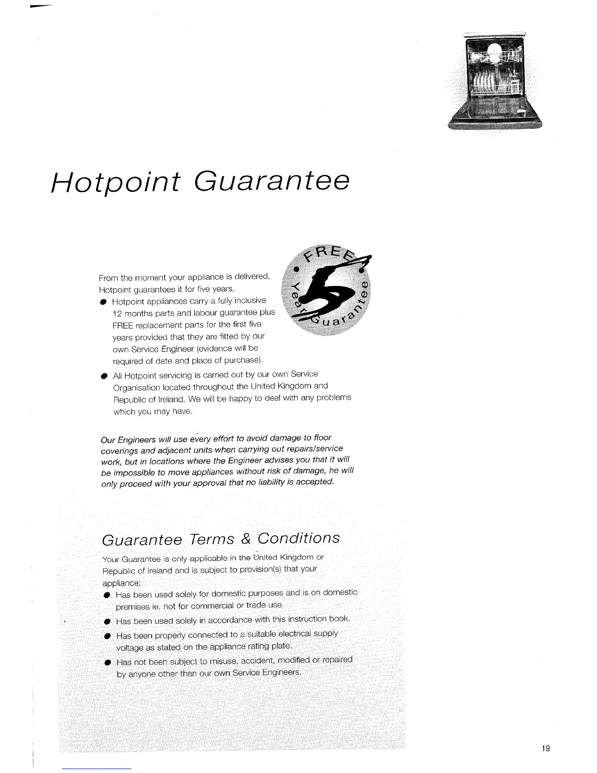 Hotpoint DF53 - Hotpoint Manufacturer Guarantee Terms; Guarantee Conditions and Exclusions
