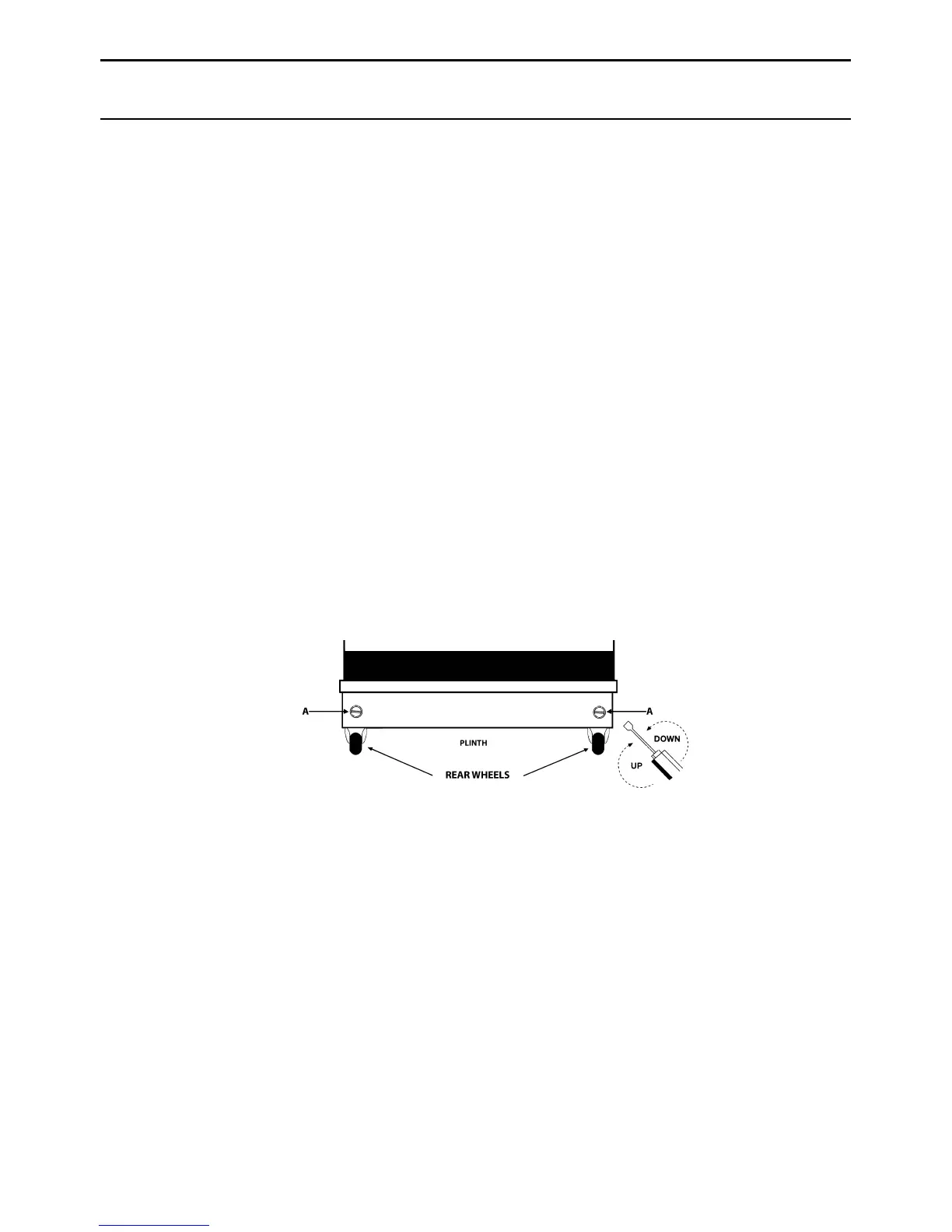 Two rear wheels and two front feet are fitted which can be adjusted up or down to set the height