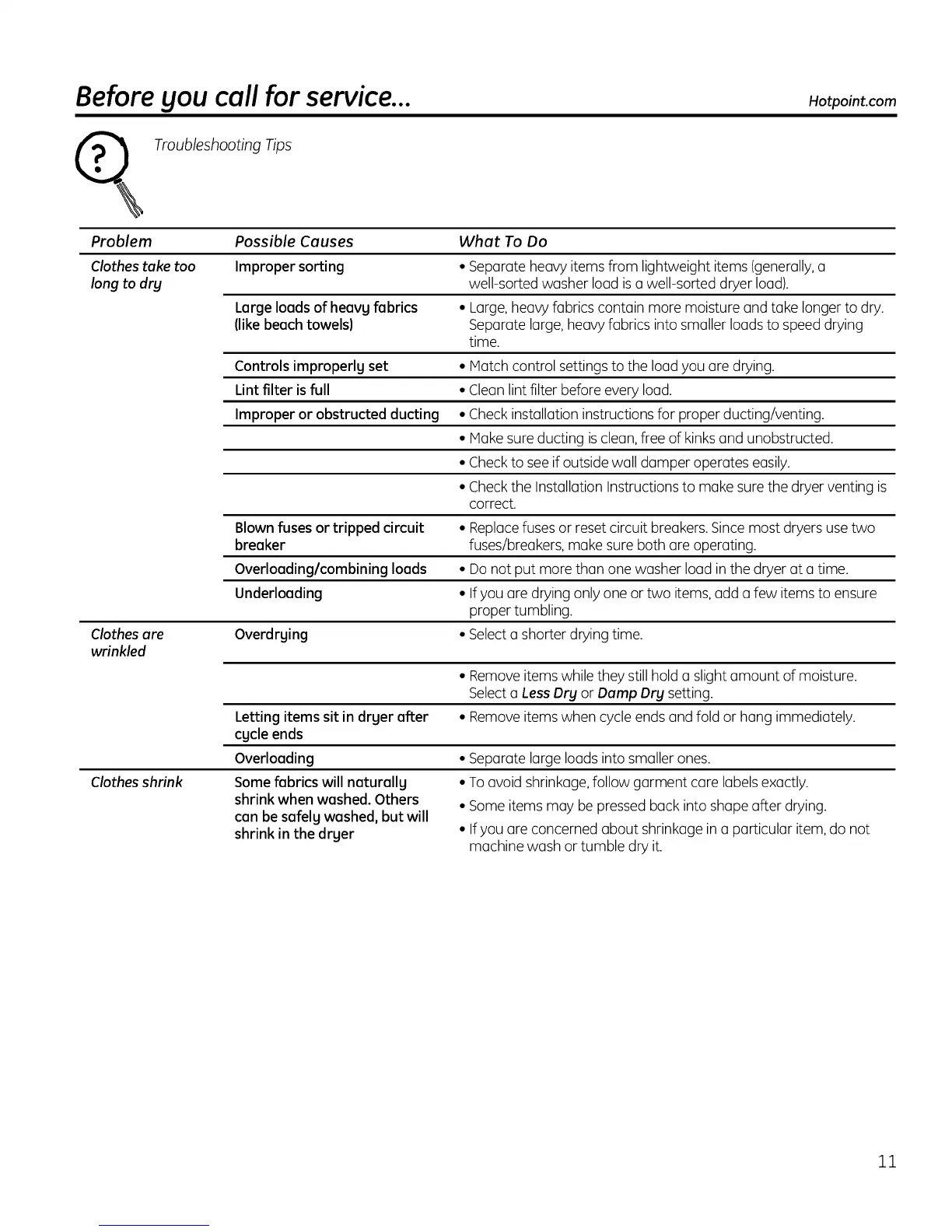 Clothes take too Improper sorting • Separate heavy items from lightweight items(generally,a