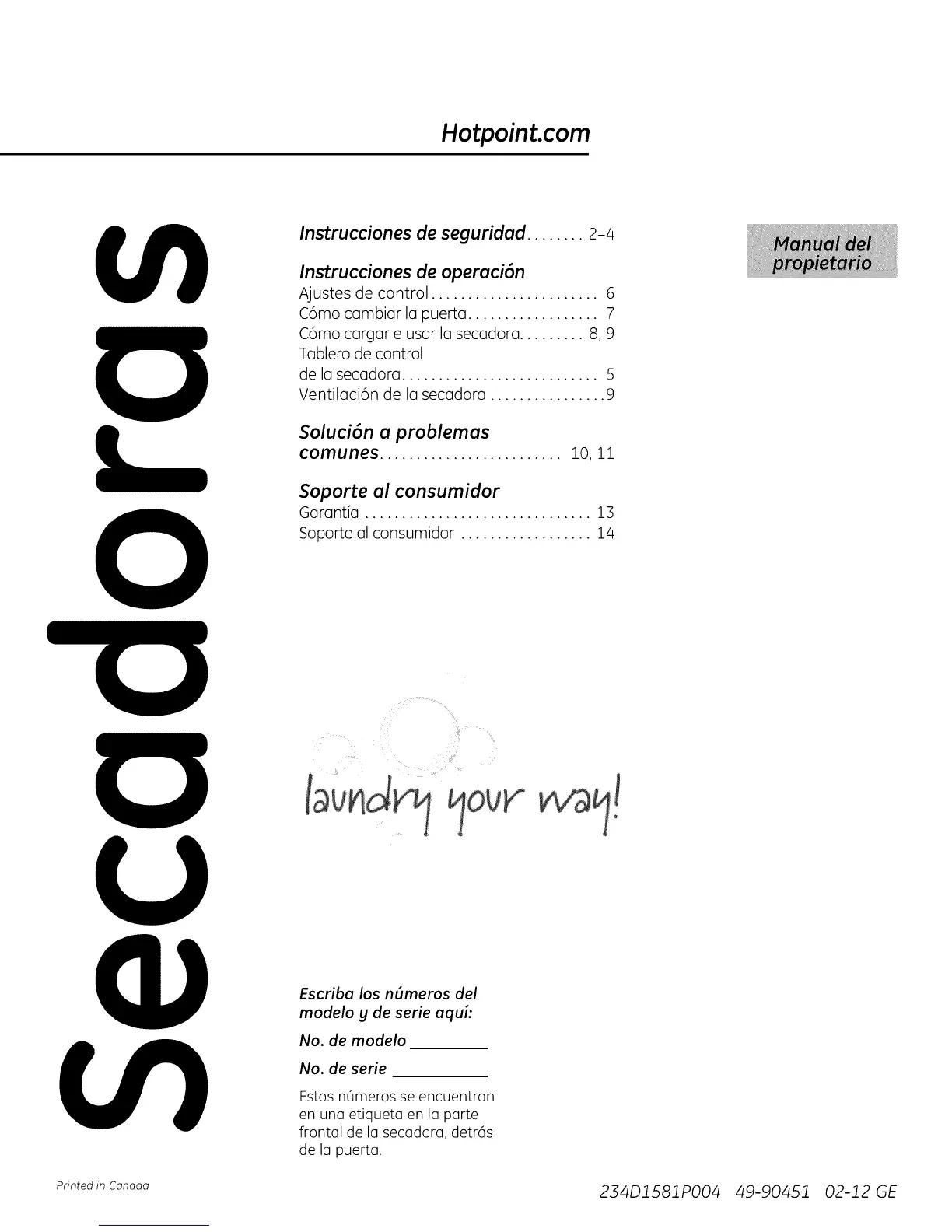 Printedin Canada 234D1581PO04 49-90451 02-12 GE