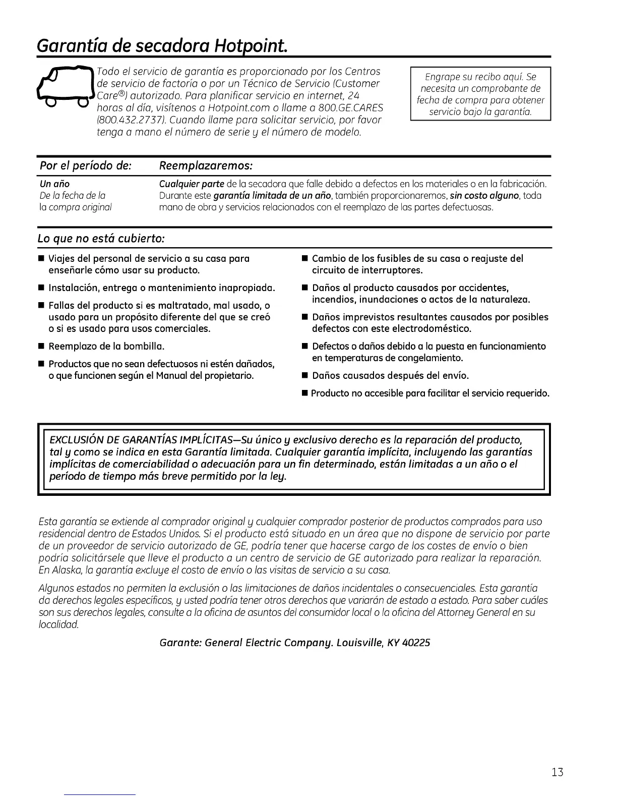 de un proveedor de servicio outorizodo de GE,podrio tenet que hocerse cargo de los castes de envio o bien