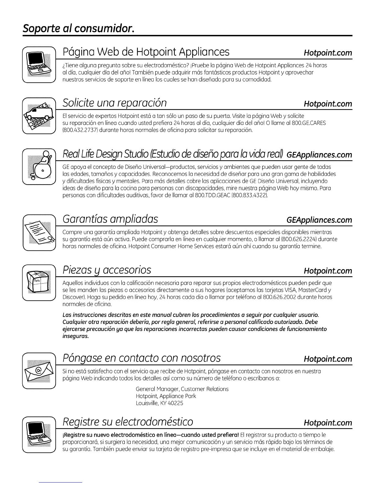 Elservicio de expertos Hotpoint est6 a tan s61oun paso de su puerta. Visite la p6gina Web y solicite