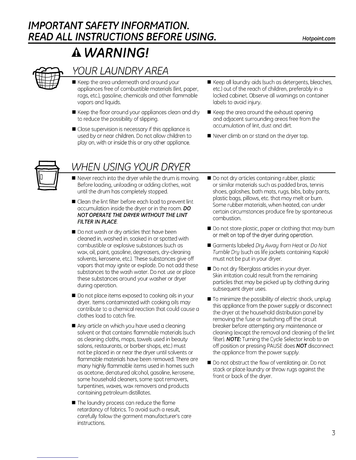 WHEN USING YOUR DRYER